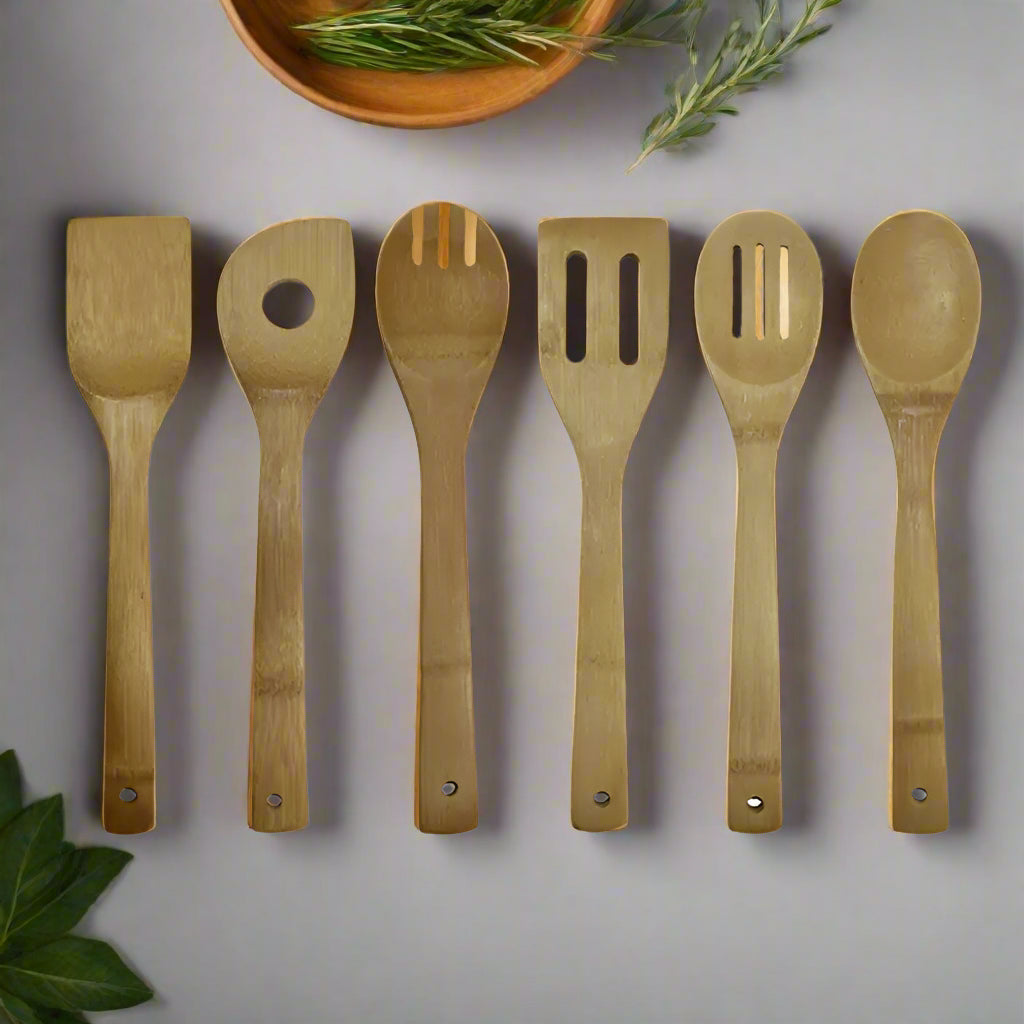 Elevate your cooking experience with this stylish and functional kitchenware set. Order your 6-piece bamboo kitchen utensil set today and enjoy the blend of nature and utility in your culinary adventures!