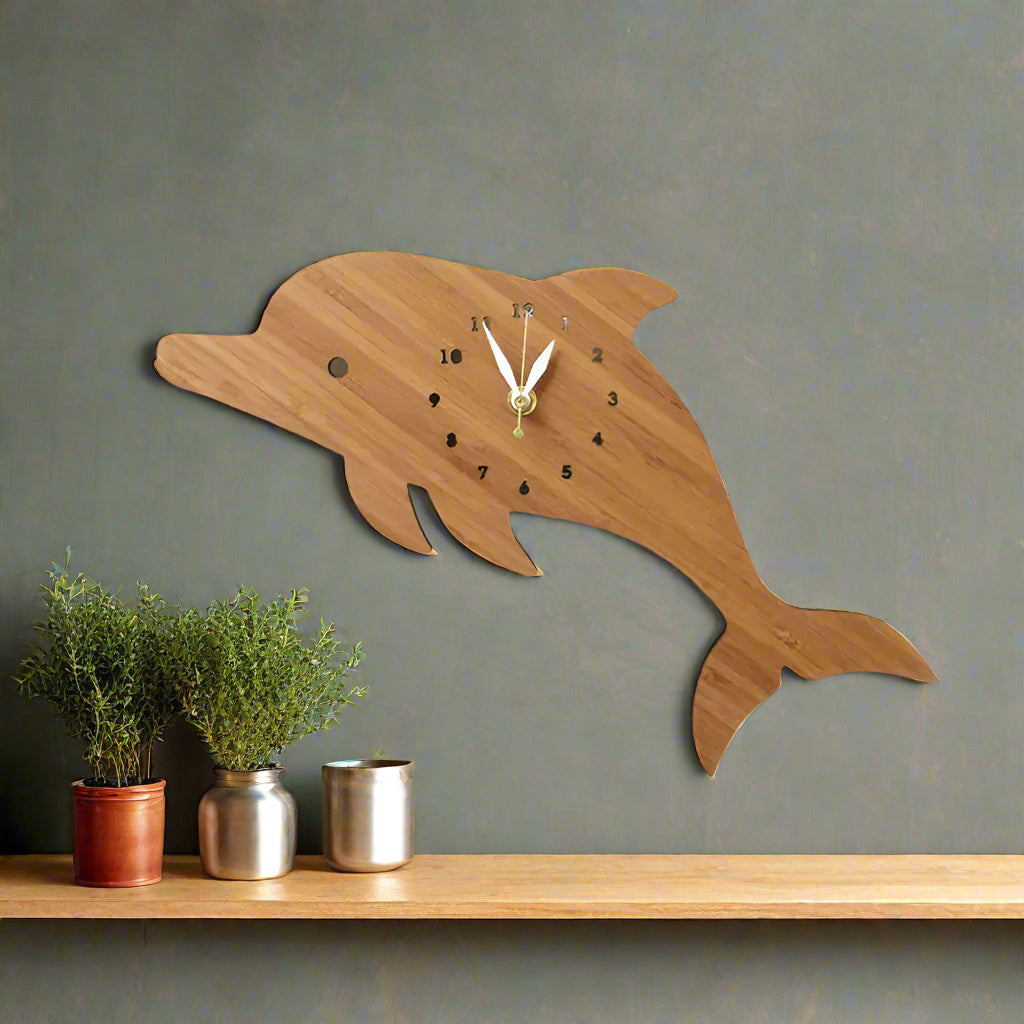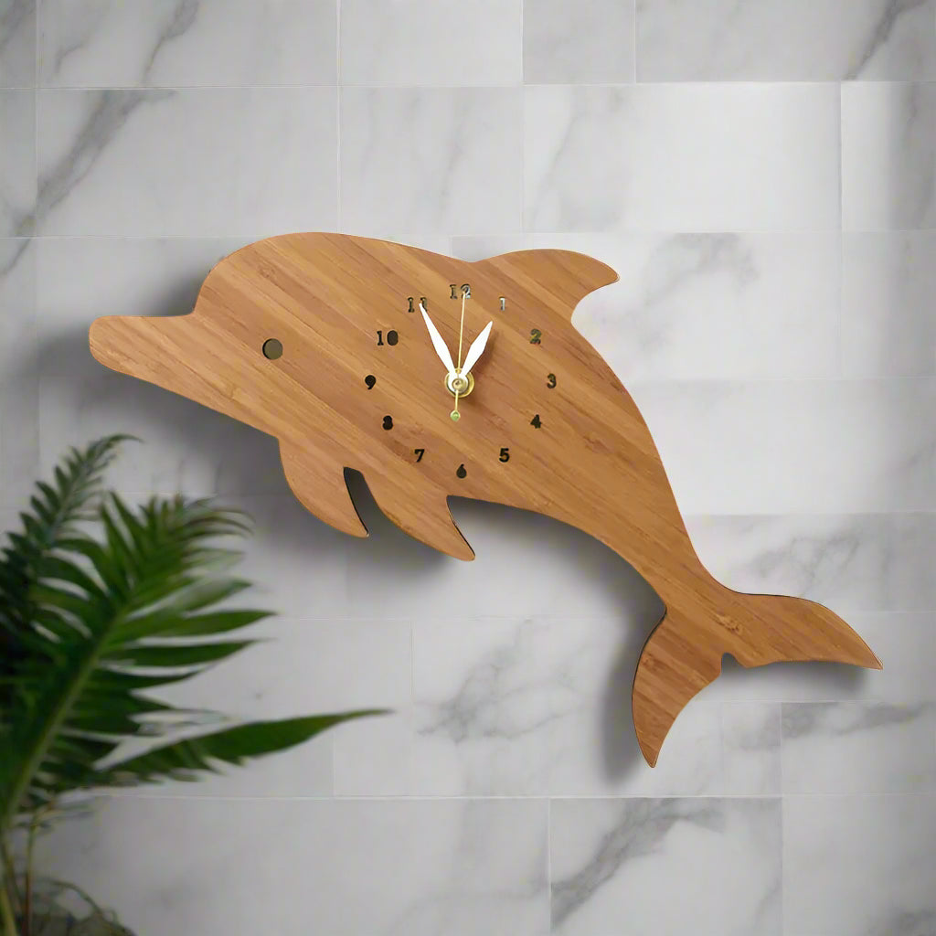 Transform your home decor with our Bamboo Dolphin Wall Clock. This modern and minimalist clock is not just a timepiece; it’s a piece of art that brings a touch of creativity and charm to any room. With a diameter of approximately 30CM and a lightweight design of about 0.6KG, it’s perfect for any wall space.